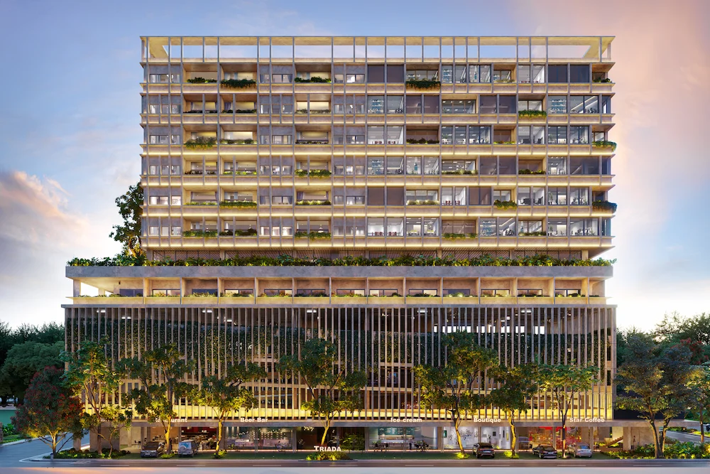Torre Triada es un complejo de usos mixtos que promueve una vida cosmopolita bajo el concepto ALL IN ONE, reuniendo en un solo lugar las mejores opciones de inversión inmobiliaria.