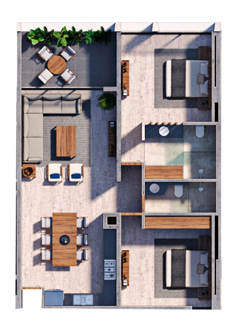 Hemos unido cada detalle para crear tu departamento perfecto, donde no tienes que ir muy lejos para encontrar todo lo que necesitas, para relajarte, trabajar o simplemente disfrutar de la vida.
